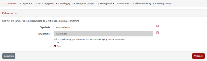 U krijgt dan in uw aanvraagproces een extra stap waarbij u de gegevens van de bevoegd vertegenwoordiger(s) van uw organisatie zal moeten invullen. Deze personen zullen dan moeten tekenen voor uw aanvraag.